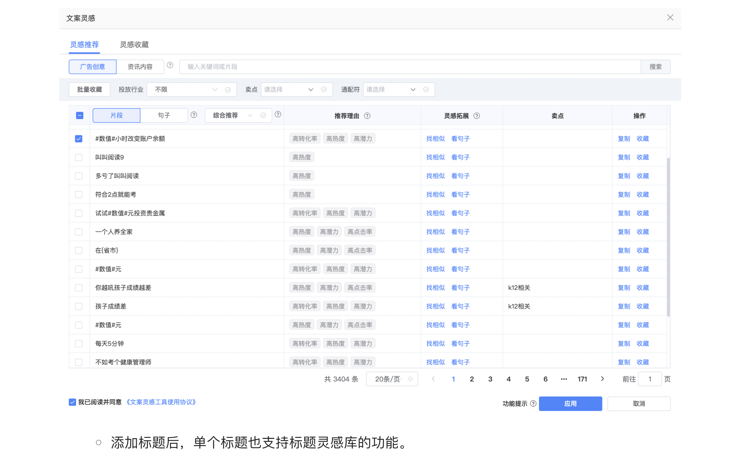 快应用行业投放创意最新洞察快应用正迅速成长为移动互联网领域内不可或缺的一部分。随着用户对便捷性和即时体验的需求日益增加,快应用凭借其无需下载安装、即点即用的特性,不仅极大地提升了用户的使用体验,同时也为各行各业提供了全新的获客途径和服务模式。然而,如何在激烈的市场竞争中脱颖而出?关键在于精准把握市场发展趋势,制定有效的广告投放策略。这一切的前提是对市场的深刻洞察和理解。超级汇川广告平台除了运... uc神马广告超级汇川平台是怎么搭建的?有哪些功能在介绍投放平台之前,小编先带大家回顾一下uc浏览器的背景跟市场表现,UC浏览器由何小鹏与梁捷于2004年8月在广州创立,隶属于UC Mobile Limited(后更名为广州市动景计算机科技有限公司)。初期聚焦移动端浏览器研发,以“省流量、速度快”为核心优势,通过数据压缩和云加速技术突破2G时代网速限制。推出全球首个手机浏览器“UCweb”,支... 程序化创意产品链接AI智投轻洲-AIAPI开放平台友情链接UC官网夸克官网书旗官网关注我们2004-2016 yingxiao.uc.cn 版权所有 网络文化许可证:粤网文【2013】0245-095号中华人民共和国互联网药品信息服务资格证:(粤)-非经营性-2 智投版投放机制介绍 「AI智投」模式介绍及操作指南附件 ( 1 ) 超级汇川一键起量产品手册一、功能概述二、操作说明三、投放建议四、案例分享五、常见问题 在当前的数字营销领域,信息流广告作为重要的流量获取渠道,承载着众多广告主的推广需求。然而,一个显著的现象正在影响平台的健康生态:有相当数量级的在投广告,使用的是完全相同或高度相似的创意素材。这种创意同质化问题,不仅使广告界面显得单调乏味,更重要的是,它直接引发了广告主内部不同计划之间的相互挤压与竞争,严重影响了最终的uc头条广告投放效果与投资回报率。对于广告主而言,这意味着一方面付出了重复的... 在uc头条广告推广中,“差异化创意”指的是在全量超级汇川信息流在投创意池中,与其它广告素材相比,在核心创意元素上具有显著独特性、非雷同化的广告内容。具体而言,平台系统会自动识别并排除两类创意——完全相同的创意和高度相似的创意,其余未被排除的创意即被判定为差异化创意,并自动进入平台的长期策略扶持范围,获得更大的展现机会与流量倾斜。如何理解“相同创意”与“相似创意”?根据平台规则,以下两种情况将... 在平台差异化创意扶持策略全面实施后,广告主在uc头条广告代理业务中面临着一个新的运营课题:如何有效管理因创意重复度过高而被挤压的广告内容,从而提升整体获量机会?针对这一需求,平台新增了“创意建议”功能及相关快捷筛选工具,帮助广告主快速定位问题创意并进行针对性优化。差异化创意的扶持机制与广告主的应对策略根据平台策略,凡是符合差异化标准的创意均会自动获得流量扶持,无需广告主进行额外操作。而广告主... 在uc头条广告推广的广告投放中,出价策略是影响广告效果的核心因素之一。合理的出价不仅能提升广告竞争力,还能帮助系统模型更快学习,实现稳定投放。尤其在uc头条广告推广这类效果导向的平台上,精细化的出价调整更是提升ROI的关键。以下结合uc头条广告推广的投放逻辑,总结出几条通用出价建议,帮助广告主更好应对实际投放中的各类情况。1. 深度转化出价必须高于转化出价在uc头条广告推广的双出价投放模式中... 在顺利完成UC头条广告开户流程后,广告主面临的重要任务就是建立科学有效的转化追踪体系。全链路转化绑定作为UC平台的重要功能,对于提升投放效果、优化广告策略具有关键意义。本文将从适用场景、核心价值、操作建议三个维度,为已完成UC头条广告开户的广告主提供全面的转化绑定指导。一、全链路转化绑定的适用场景根据平台规范,在以下三种情况下,已完成UC头条广告开户的广告主需要考虑进行转化绑定的升级优化:首... 在成功完成UC头条广告开户流程后,广告主面临的首要操作环节就是预算配置。合理的预算设置不仅是控制推广成本的基础保障,更是影响广告展现时长与推广效果的关键因素。对于刚完成UC头条广告开户的广告主而言,理解每日预算的基本概念、掌握账户与计划层级的预算设置方法,是开启有效广告投放的第一步。每日预算是广告主每天愿意为推广活动支付的最高费用限额。在UC头条广告开户后的投放系统中,当天的点击费用总额达到... 在信息流广告成为品牌获客核心渠道的当下,UC 头条广告凭借庞大的用户基数、精准的算法推荐和多元的展现形式,成为广告主抢占移动端流量的优选。无论是品牌曝光还是精准转化,UC 头条广告都能凭借独特优势,为不同行业客户打造高效营销解决方案,让每一次投放都精准触达目标用户。 UC 头条广告依托 UC 浏览器超 5 亿用户体量,信息流日曝光量高达 40 亿,其中 35 岁以下年轻用户占比 83%... 做 UC头条广告投放,想让效果更上一层楼,科学管理推广计划内的关键词是关键基础。不少人在做 UC 头条广告时,容易忽略关键词管理的细节,导致流量杂乱、转化不佳,其实只要掌握核心方法,就能让 UC 头条广告的投放更精准、更高效。一、UC 头条广告投放:关键词数量与质量的核心建议在 UC 头条广告的推广计划里,关键词数量可不是越多越好,质量与精准度才是关键,具体可